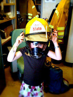 N got to ride the ferry boat today! We were on our way back and the captian noticed how excited he and his sister were and it got mentioned that it was his birthday. Well, he just invited us into the office and asked if the kids wanted to try on the fire equiptment, and show us around. He even offered to have E wish her brother a happy birthday over the loud speaker...and when she couldn't pull it together and stop giggling he went ahead and wished out little 2-year-old a very Happy 2nd Birthday. So neat!